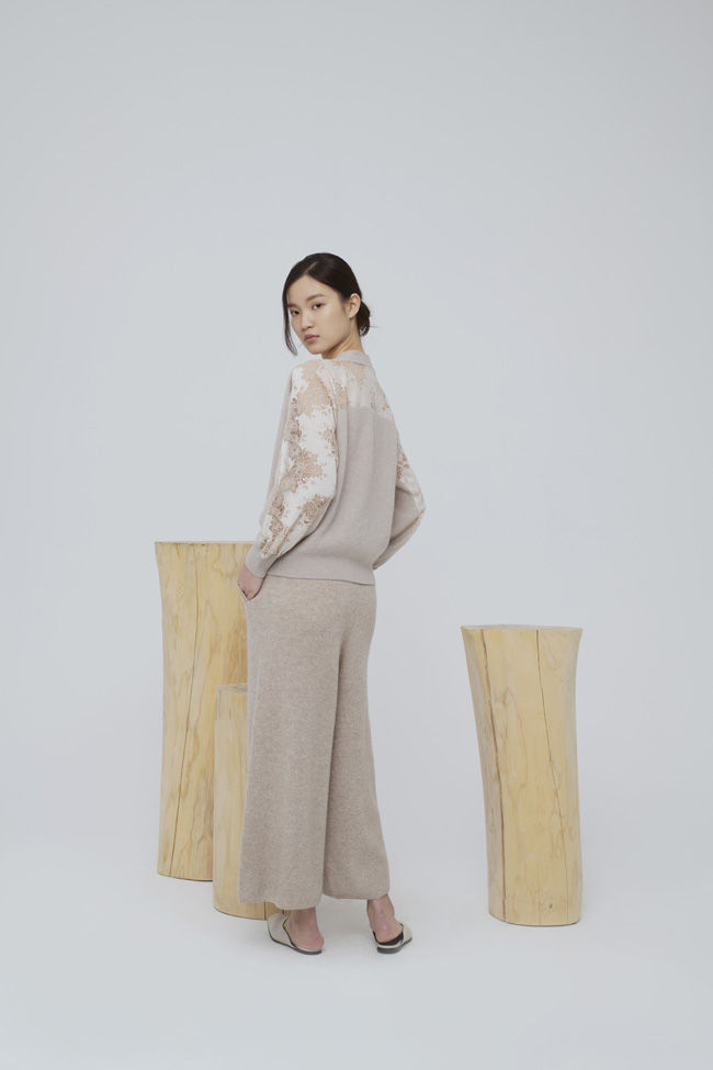 Sandra:我們的羊絨品牌設(shè)計亮點:時尚、簡約、舒適自在,往往會將羊絨和蕾絲及真絲相拼來微妙設(shè)計。這季的設(shè)計靈感是:新經(jīng)典。如何回歸少而精,打造更少但更好的衣櫥,適合當代女性們多場景穿搭。另外,你以為羊絨只是秋冬的寵兒,那就大錯特錯了。羊絨的透氣性、吸濕性非常強。不通的織法以及面料搭配,可以創(chuàng)造出羊絨不通的質(zhì)感。BYARN在羊絨的基礎(chǔ)上,加上了天然纖維和真絲,既在舒適程度上保證了品質(zhì),又平衡了實穿與設(shè)計感、經(jīng)典與創(chuàng)新度之間的微妙界限。
