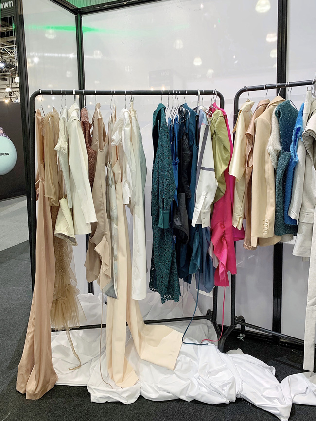 筱琪:因?yàn)榻衲暌咔榈奶厥庑,?guó)外買手基本都是“云采購”,基本上我們都在網(wǎng)上聯(lián)系和看款式,國(guó)外買手似乎更偏向于大廓形和大膽一些的款式,相較與國(guó)內(nèi)能來到我們展位現(xiàn)場(chǎng)看款式的買手來說,國(guó)內(nèi)買手還是更偏向時(shí)髦同時(shí)也適合通勤的款式。