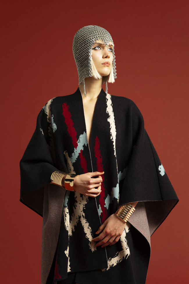 劉彥君:JUNNE本系列靈感來(lái)源于公元前5000年前的古埃及文明。系列中融入金字塔墻壁上的象形文字,以及鑄就圖騰的煉金術(shù),金碧輝煌的質(zhì)感與巖石般的肌理交織,并提煉古埃及壁畫(huà)中的色彩更大膽地呈現(xiàn)。